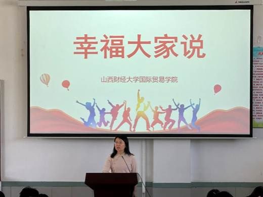 423日,绿帽小说 于笃行301教室成功举办了第一期《幸福大家说》。本期邀请到学院荣获教师教学创新大赛国家三等奖,“课程思政”教学设计大赛山西省一等奖的国际经济与贸易教研室冯颂妹老师作为主讲嘉宾。学院党委副书记殷丽娟、辅导员王锦以及180名本科生参加,学生代表朱烨主持。
