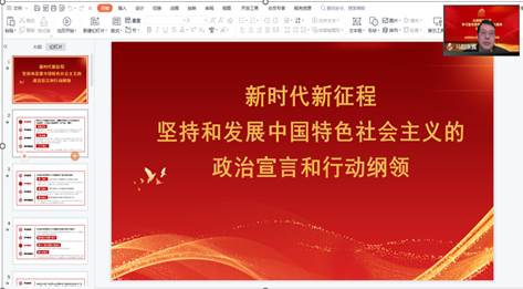 全体教职工宣讲党的二十大精神。报告会的主题为《新时代新征程坚持和发展中国特色社会主义的政治宣言和行动纲领》。会议由学院党委书记陈晓虎主持。
