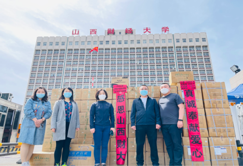 田祥宇校长与学院领导向高福忠先生表达了诚挚的感谢。学校疫情防控专班综合协调组组长赵学文协调了有关事宜。在对捐献物资进行全面消杀后,学院领导、辅导员及有关部门共同接收了防疫物资,并再次向家长表示了感谢。