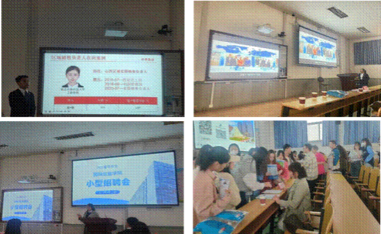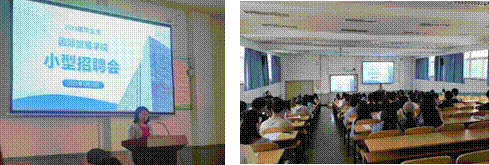 于笃行楼301举办2023届毕业生小型招聘会,邀请山西省诚信化工有限公司、山西特码茹跨境电商有限公司和牧原食品股份有限公司相关负责人宣讲。学院党委副书记殷丽娟、毕业班辅导员孙梦霞以及130余名毕业生参加了此次招聘会。