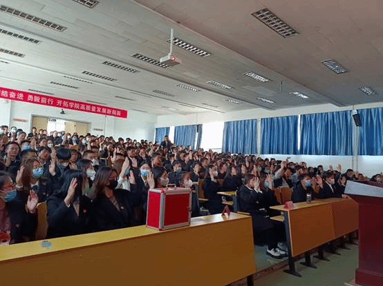 大会在庄严的国歌声中拉开序幕,学院党委书记陈晓虎同志代表上届党委作题为《团结奋进,勇毅前行,努力开创学院高质量发展新局面》的工作报告。